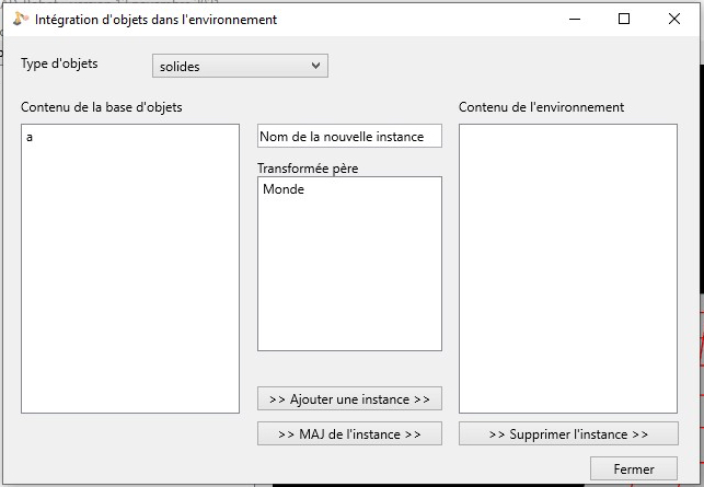 - L'ajout de l'instance de l'objet ajoute également les référentiels liées à cet objet dans l'environnement de la cellule. D'autres objets pourront alors être ajoutés sur ces nouveaux référentiels.