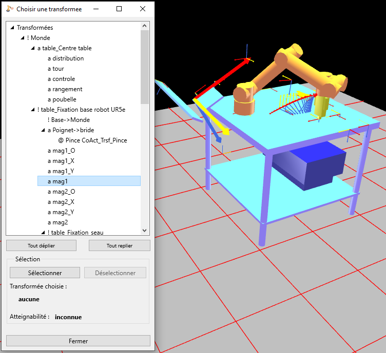 Cette fenêtre est utilisée régulièrement lorsque l’utilisateur doit choisir un repère de l’environnement ; par exemple lors de :